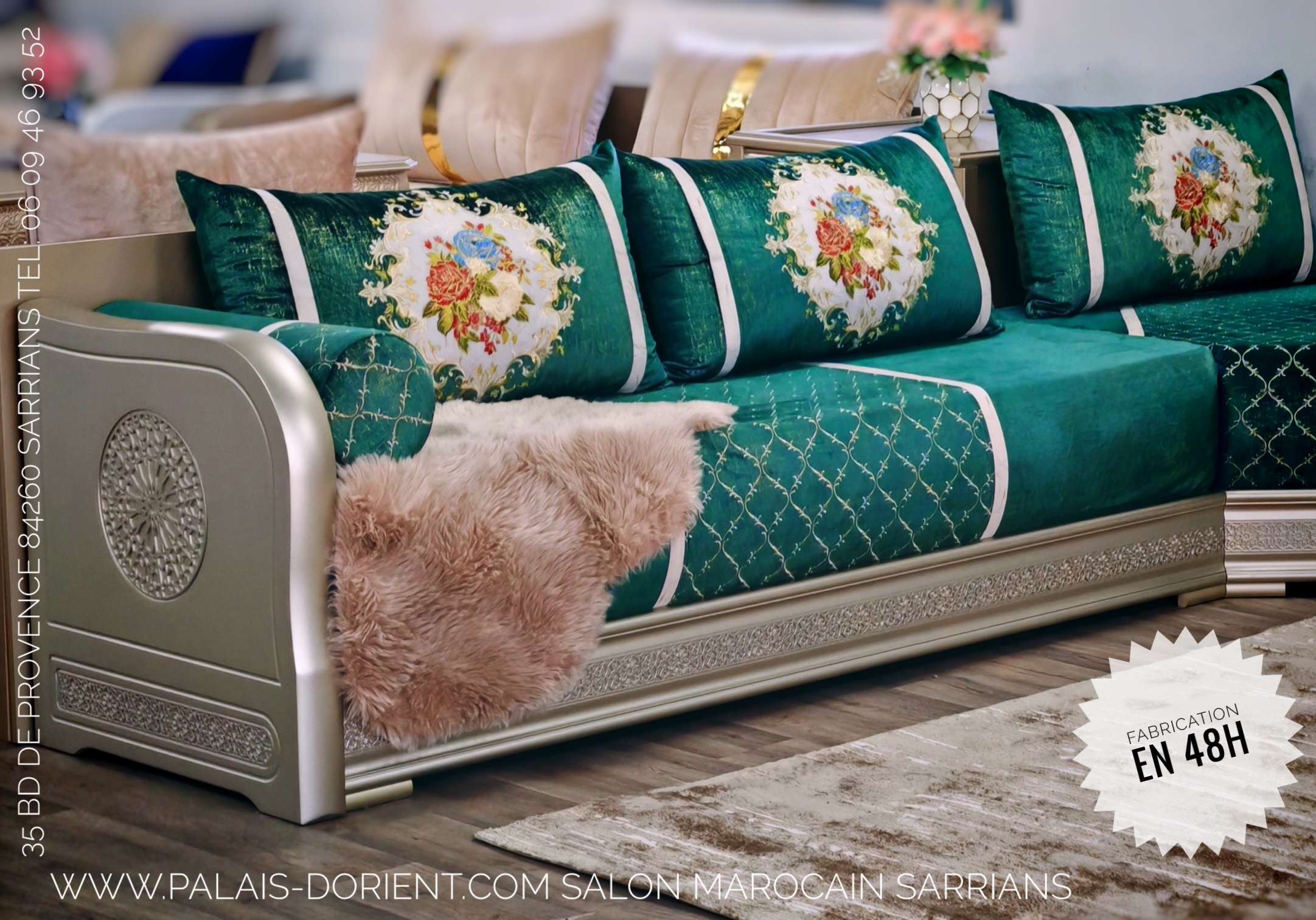 ou appelez : +33 7 44 80 19 46 Salon capitonne, salon Marocain, salon Oriental, banquette, meubles, Tapis, Table, sedari, Cadre, Tissu, Rideaux, Nappes, capitonner, matelas et décorationUN REEL FABRICANT et 30 Modèles à votre disposition,